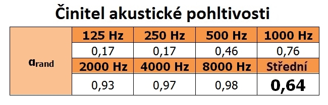 Tabulka αrand je definována koeficientem vstřebávání v závislosti na kmitočtu. Měření probíha při určitých frekvencích kde výsledná hodnota je udává průměrnou hodnotu činitele akusticé pohltivosti, tedy schopnosti materiálu pohlcovat zvuk.