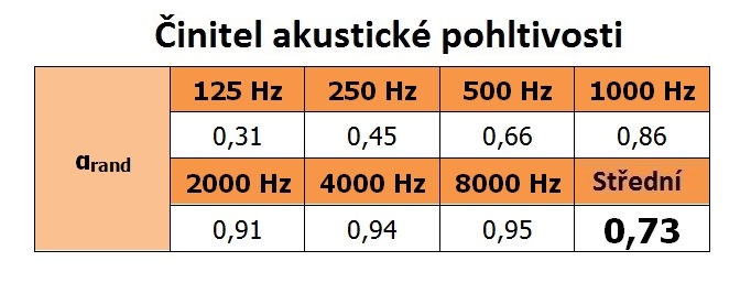 Tabulka αrand je definována koeficientem vstřebávání v závislosti na kmitočtu. Měření probíha při určitých frekvencích kde výsledná hodnota je udává průměrnou hodnotu činitele akusticé pohltivosti, tedy schopnosti materiálu pohlcovat zvuk.