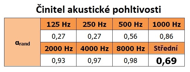 Tabulka αrand je definována koeficientem vstřebávání v závislosti na kmitočtu. Měření probíhá při určitých frekvencích kde výsledná hodnota je udává průměrnou hodnotu činitele akustické pohltivosti, tedy schopnosti materiálu pohlcovat zvuk.