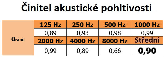 Tabulka αrand je definována koeficientem vstřebávání v závislosti na kmitočtu. Měření probíha při určitých frekvencích kde výsledná hodnota je udává průměrnou hodnotu činitele akusticé pohltivosti, tedy schopnosti materiálu pohlcovat zvuk.