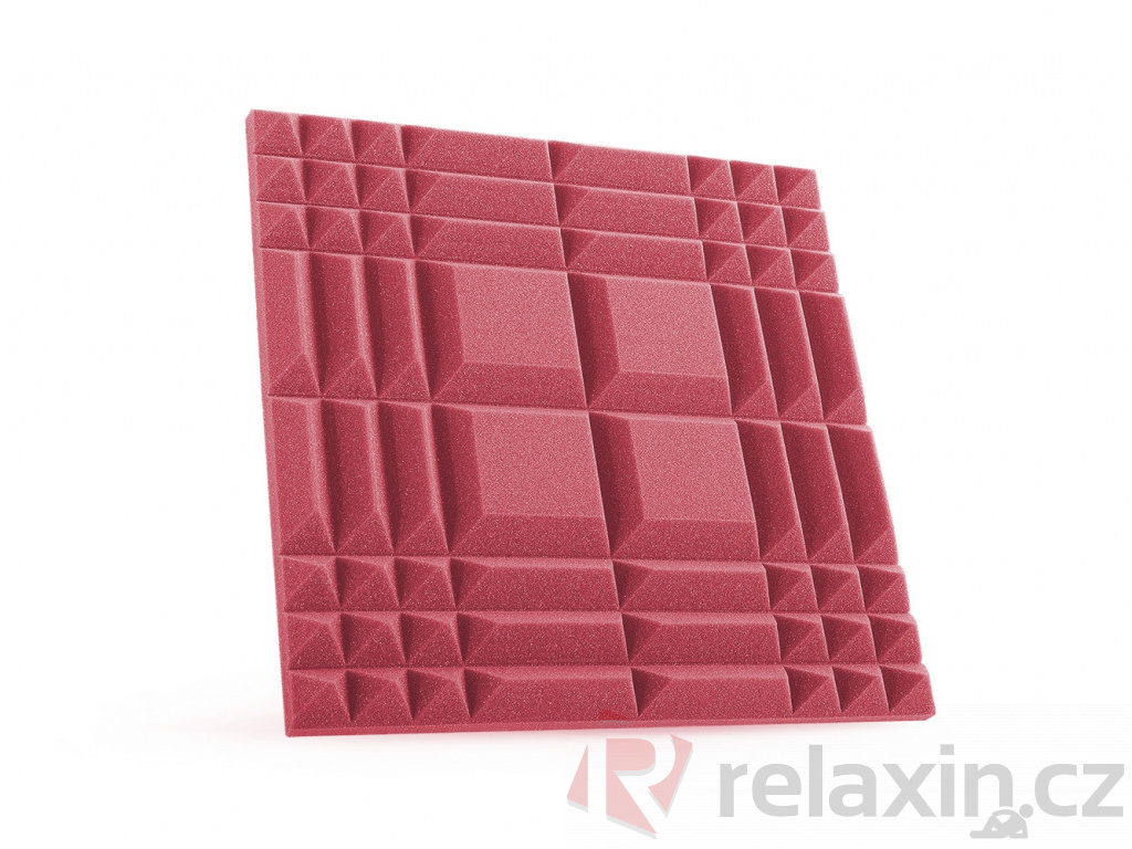 Akustická pěna combo A v rozměru 50x50x4 cm v červené barvě pro tlumení zvuku.
