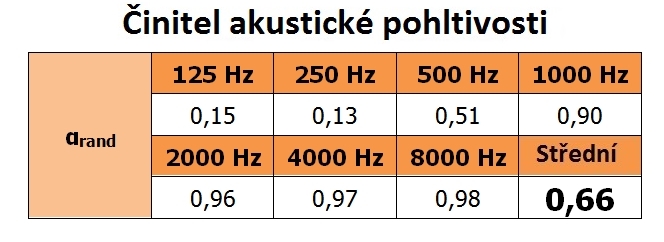 Tabulka αrand je definována koeficientem vstřebávání v závislosti na kmitočtu. Měření probíhá při určitých frekvencích kde výsledná hodnota je udává průměrnou hodnotu činitele akustické pohltivosti, tedy schopnosti materiálu pohlcovat zvuk.