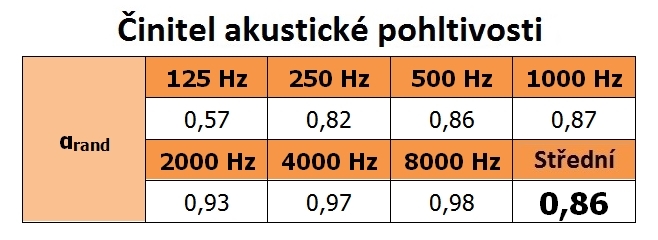 - Činitel akustické pohltivosti 0,86