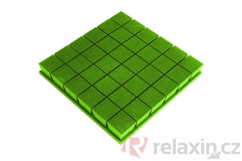 Akustická pěna combo A v rozměru 50x50x4 cm v zelené barvě pro tlumení zvuku.