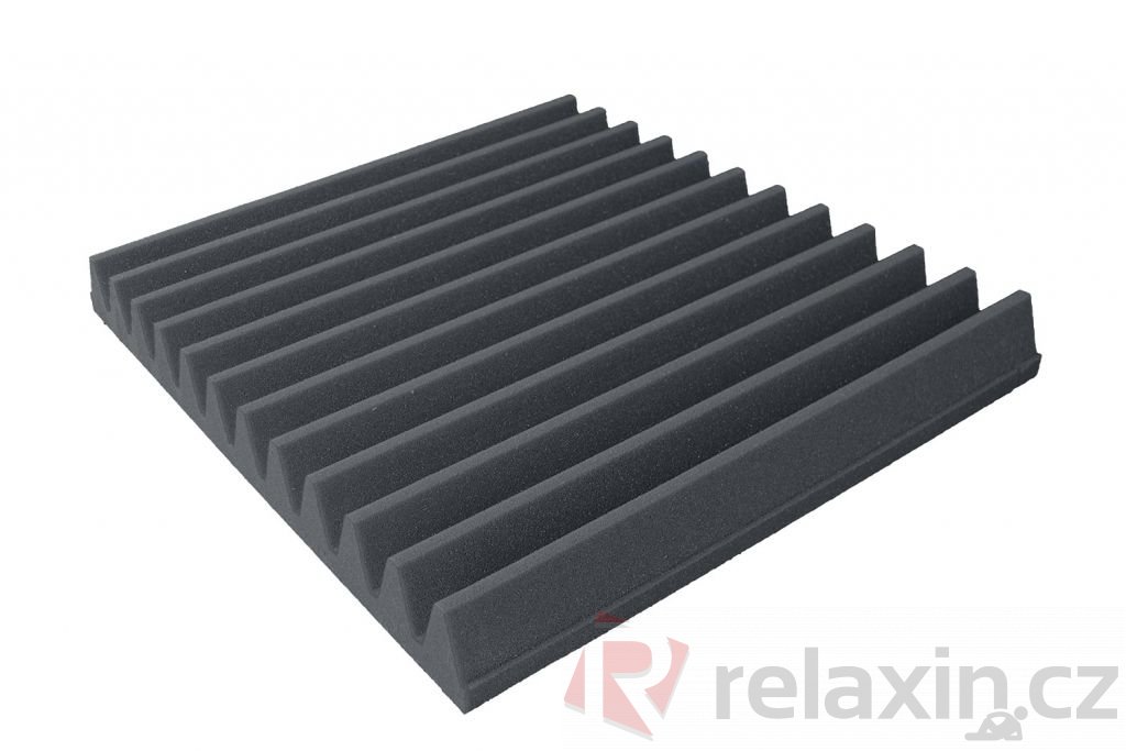 Akustická pěna vlnky v rozměrech 50x50x4 cm nebo 110x190x4 cm v grafitové barvě pro pohlcení zvuku v interiéru.