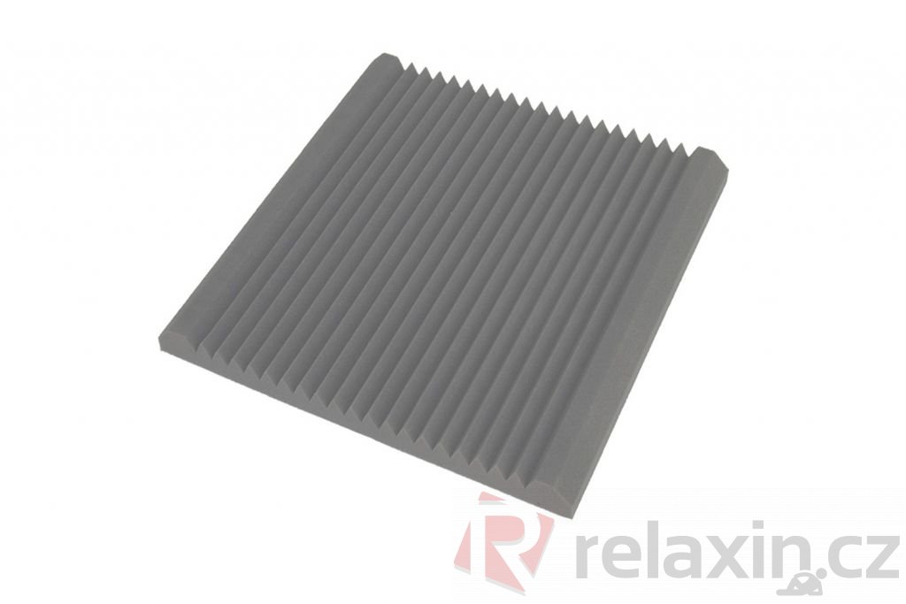 Akustická pěna V-profil v rozměru 50x50x4 cm v šedé barvě pro pohlcení zvuku v interiéru.