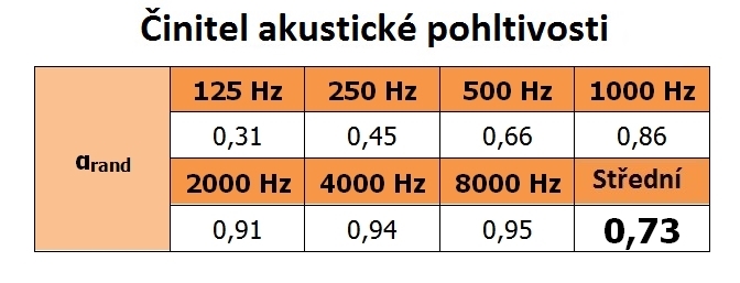 Tabulka αrand je definována koeficientem vstřebávání v závislosti na kmitočtu. Měření probíha při určitých frekvencích kde výsledná hodnota je udává průměrnou hodnotu činitele akusticé pohltivosti, tedy schopnosti materiálu pohlcovat zvuk