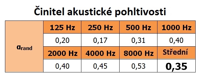 Tabulka αrand je definována koeficientem vstřebávání v závislosti na kmitočtu. Měření probíha při určitých frekvencích kde výsledná hodnota je udává průměrnou hodnotu činitele akusticé pohltivosti, tedy schopnosti materiálu pohlcovat zvuk.