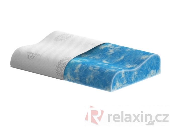 Anatomický polštář vyrobený ze speciální chladivé pěny Gelax zajistí správnou oporu hlavy a krční páteře.