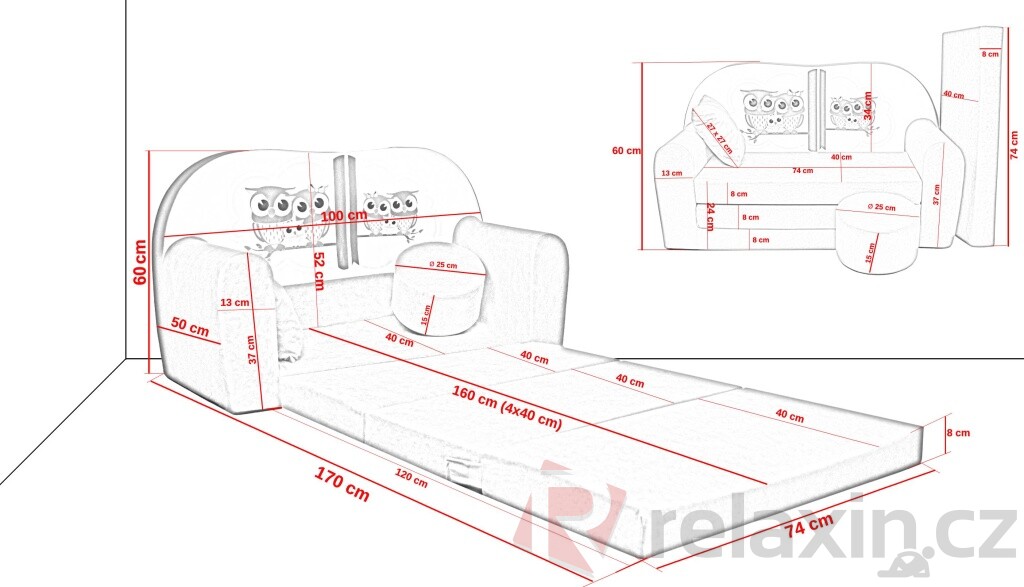UPOZORNĚNÍ, velmi pečlivě si pročtěte rozměry této dětské rozkládací pohovky.