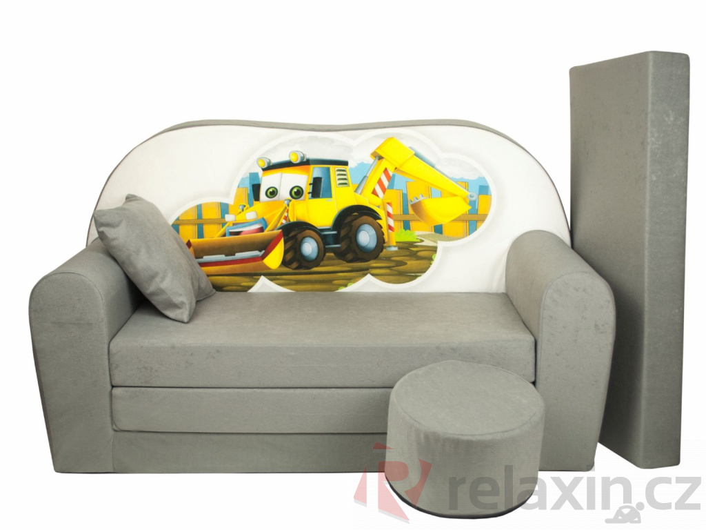 Dětská rozkládací pohovka + taburet Bagr šedá