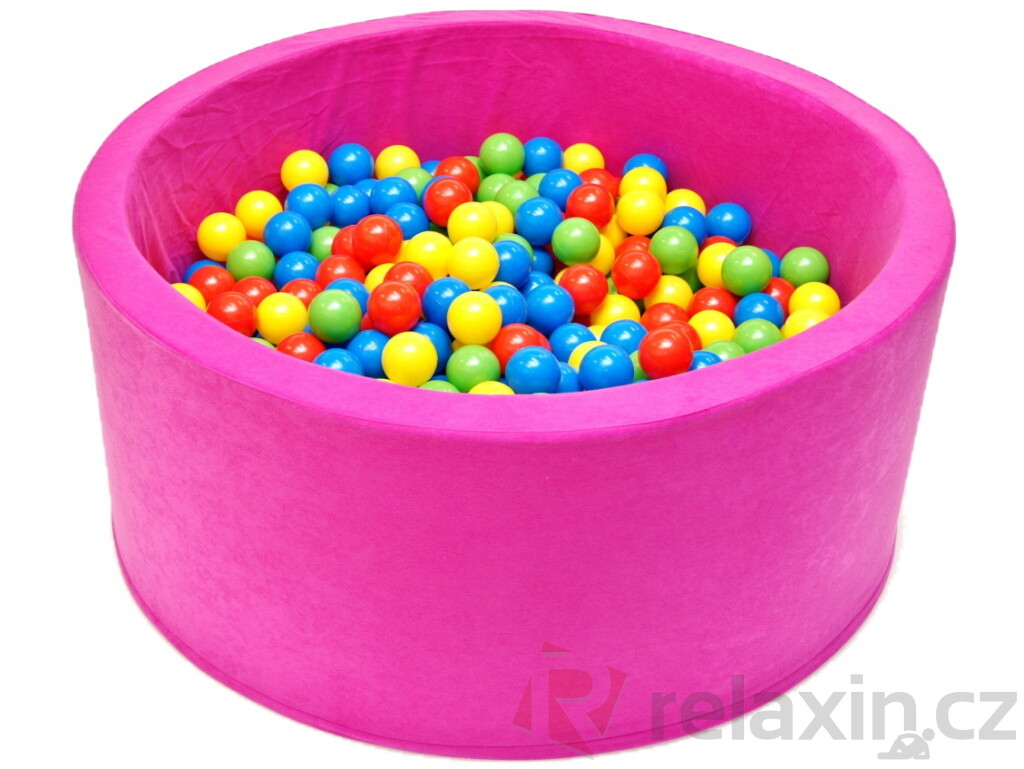 Suchý bazének pro děti s barevnými míčky. Ideální pro dětské hry a rozvoj. Rozměr bazénku 90x40 cm. Certifikované materiály - PUR pěna se snímatelným velurovým potahem.