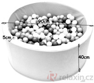 Suchý bazének pro děti s barevnými míčky. Ideální pro dětské hry a rozvoj. Rozměr bazénku 90x40 cm. Certifikované materiály - PUR pěna se snímatelným velurovým potahem.