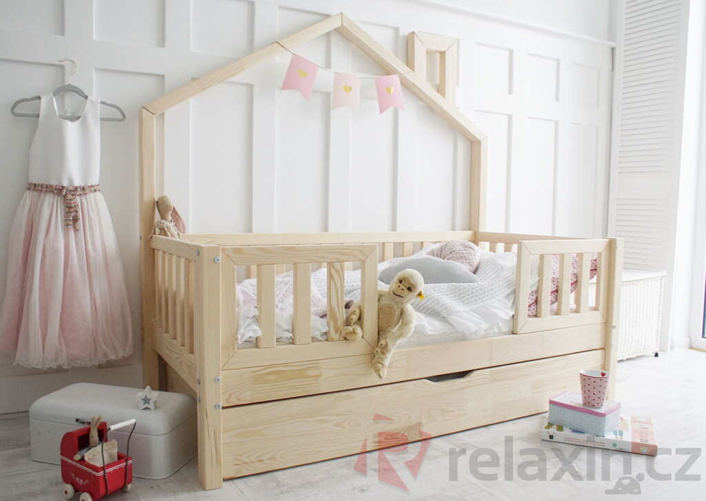 Domečková postel Bali Prosta Plus s možností úložného prostoru nebo výsuvné přistýlky. Postel domek Bali v originálním designu s přední zábrankou....