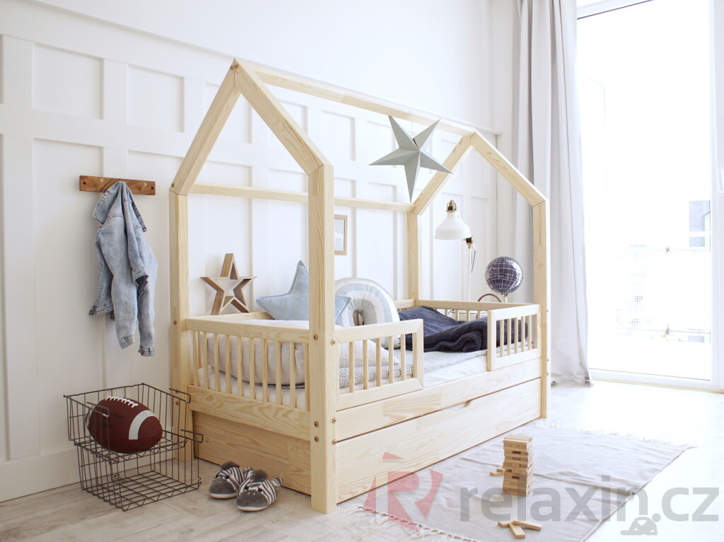 Domečková postel Bali Prosta Plus s možností úložného prostoru nebo výsuvné přistýlky. Postel domek Bali v originálním designu s přední zábrankou....
