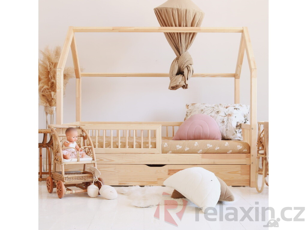 Domečková postel Bali Prosta Plus s možností úložného prostoru nebo výsuvné přistýlky. Postel domek Bali v originálním designu s přední zábrankou....