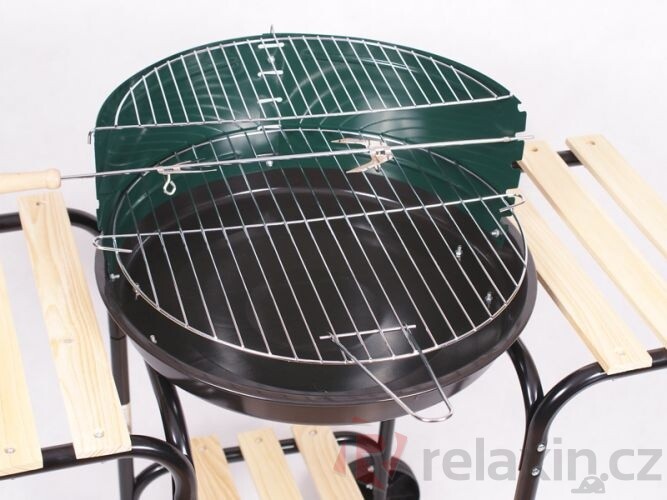 Gril obsahuje závětří s výškově nastavitelným chromovaným roštem o průměru 42 cm a otočnou vidlici s dřevěnou rukojetí. Závětří dále nabízí vrchní mřížku, na kterou je možné umístit již hotový pokrm. K odkládání či přípravě pokrmů můžete také využít dvě boční dřevěné police. Spodní dřevěná police pak skvěle využijete jako úložný prostor. Pro snadnou manipulaci je gril vybaven kolečky.