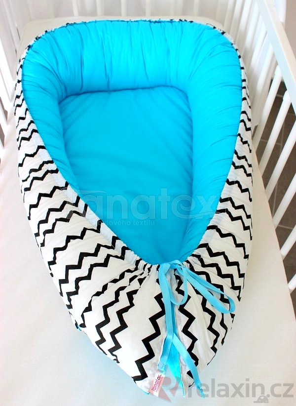Hnízdečko pro miminko cik cak černá - tyrkysová