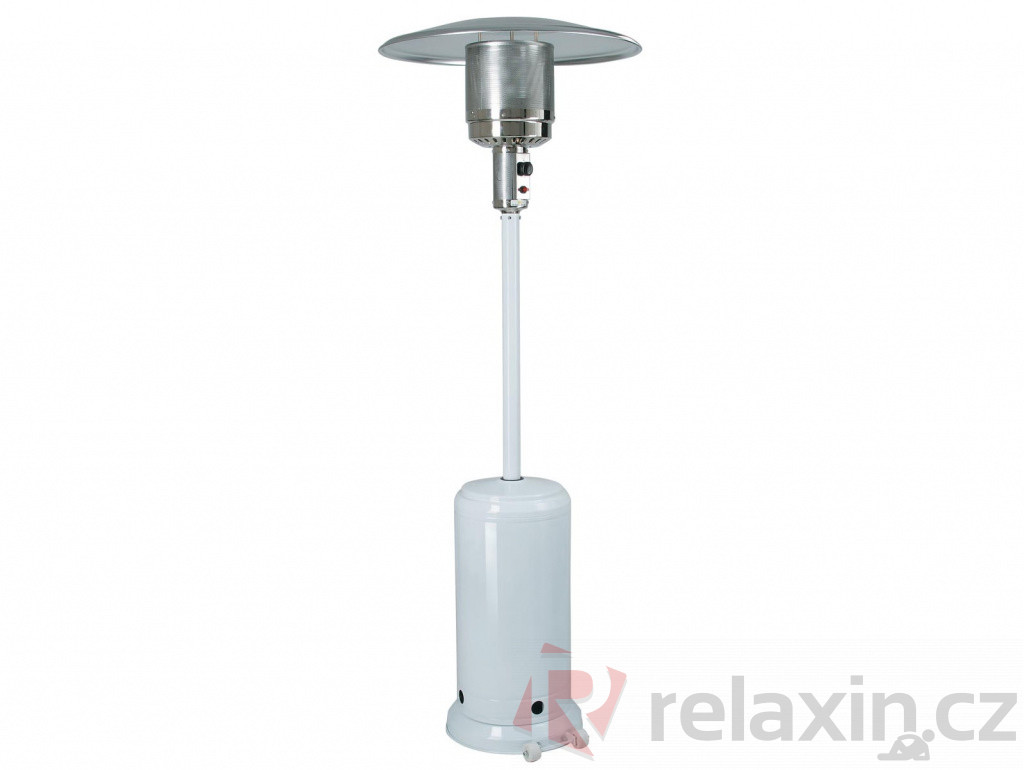 Zahradní plynové topidlo / zářič Etna v bílém provedení. S výkonem 13 kW a nízkou spotřebou plynu 0,87 kg/h. Příslušenství pro připojení propanbutanové lahve je součástí balení.