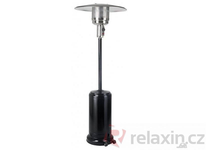 Zahradní plynové topidlo / zářič Etna v černém provedení. S výkonem 13 kW a nízkou spotřebou plynu 0,87 kg/h. Příslušenství pro připojení propanbutanové lahve je součástí balení.