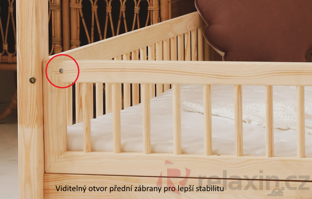 Domečková postel Bali Plotek v originálním designu s přední zábrankou a volitelnou výškou nožiček. Postel je dále možné volit v několika...