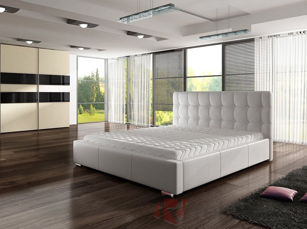 Vyobrazená varianta: Paros 05/ Paros 06. Postel lze vybírat z mnoha kombinací látek a ekokůží. Výběr ze tří rozměrových variant.