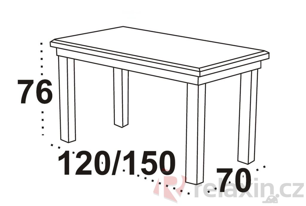 - Rozměr po rozložení stolu: Š 150 cm, V 76 cm, H 70 cm