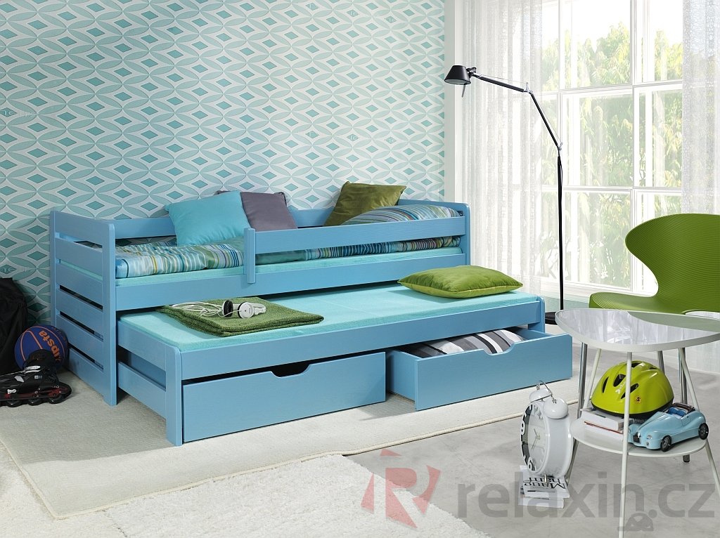 Rozkládací postel s úložným prostorem a druhým výsuvným lůžkem je vhodná do dětských a studentských pokojů pro dvě děti. Zábranku lze umístit vlevo či vpravo, umístění si lze zvolit během montáže. Největší výhodou je úspora místa, kdy rodiny s dvěma dětmi nemají prostor na dvě jednolůžkové postele nebo chtějí v dětském pokoji ušetřit místo na další nábytek či doplňky. Výsuvné druhé lůžko může také posloužit k přespání kamarádů nebo návštěv. Tato rozkládací postel s úložným prostorem se vyrábí v rozměrech 60x120 cm pro nejmenší děti, 70x160 cm pro větší děti a klasické rozměry pro studenty a dospělé 80x180 cm, 80x200 cm a 90x200 cm.