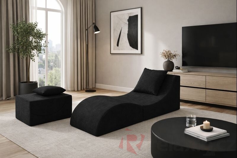 Skládací relaxační křeslo | Lehátko | Taburet | Black