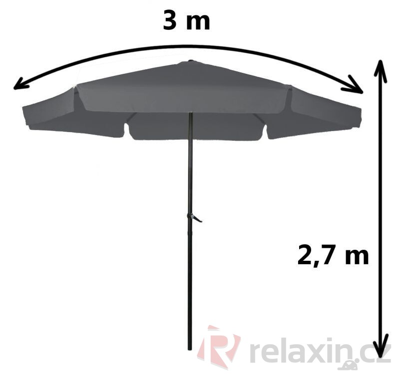 - Zahradní slunečník 300 cm šedý, SP-CR300