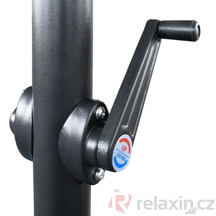 Zahradní slunečník 350 cm s ocelovou konstrukcí v šedém provedení. Snadné a rychlé rozložení konstrukce.